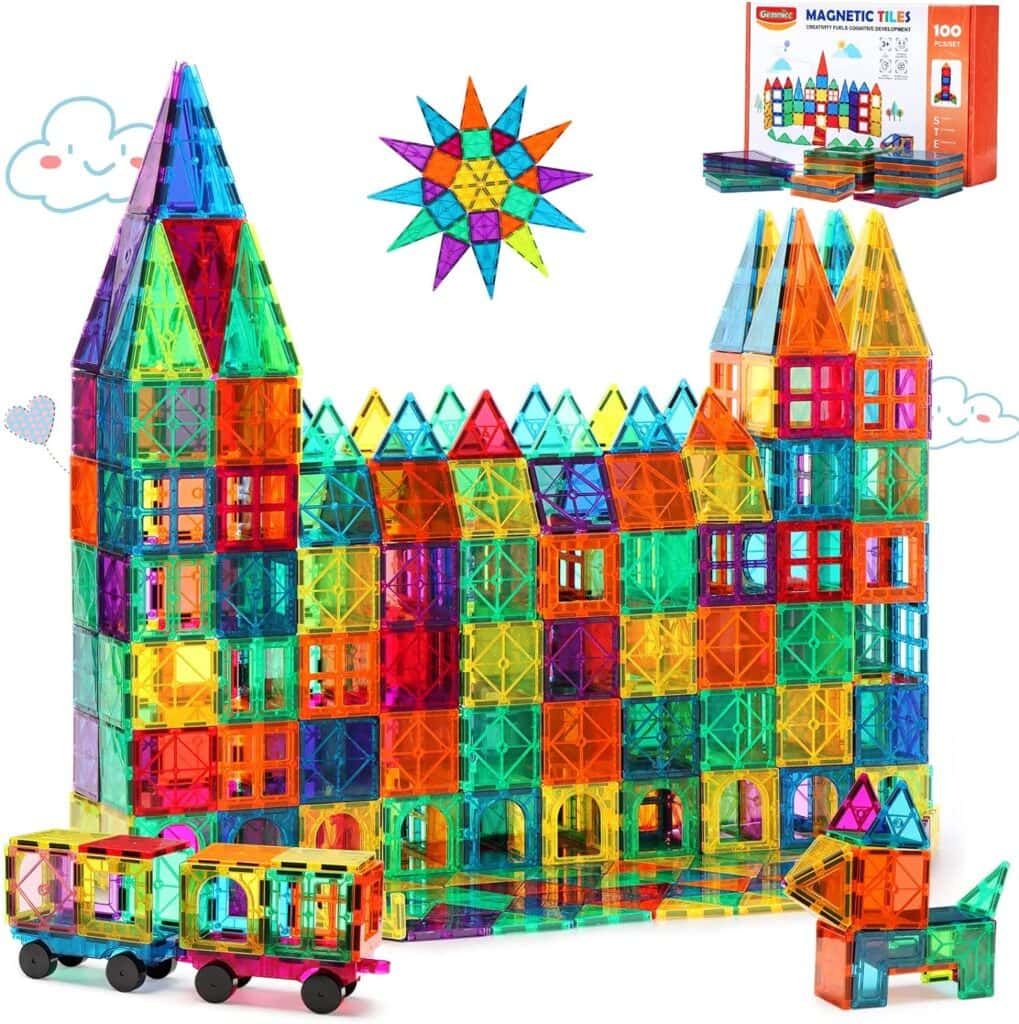Kids can have fun creating endless structures and shapes with these magnetic building tiles. The fun colors and magnetic design aid in developing fine motor skills, color and shape recognition, and let kids use their imagination to create two-dimensional and three-dimensional objects.