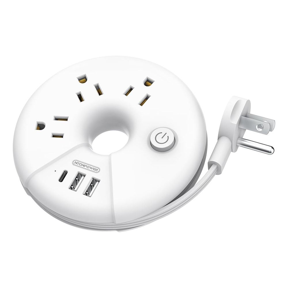 This donut-shaped power strip is perfect for people who use multiple devices while they travel. It has three outlets and three USB ports so you can charge everything without worrying about using that one hard-to-reach outlet under the hotel bed.