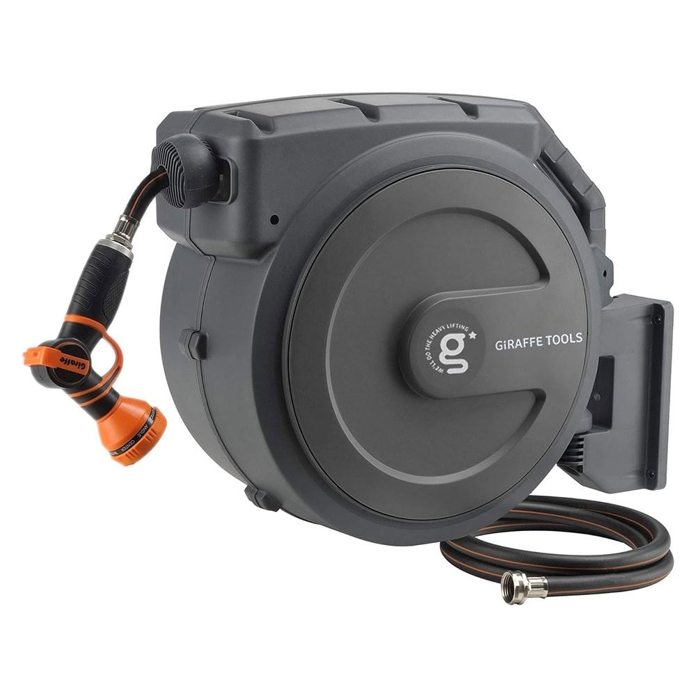 Having a long hose can bring back memories of hours spent untangling a pair of headphones or a necklace. Save yourself the time and effort of untangling your hose with this wall-mounted hose reel. It features a 130-foot-long hose that can be locked at any length and it has nine spray patterns.