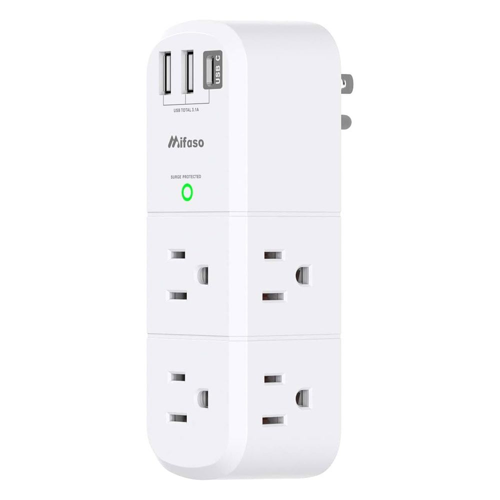 This compact outlet extender lets you efficiently charge multiple devices at a time, making it great to use at home or while traveling. The rotating plug has six outlets and three smart charging USB ports that can detect devices and provide optimal charging speed.