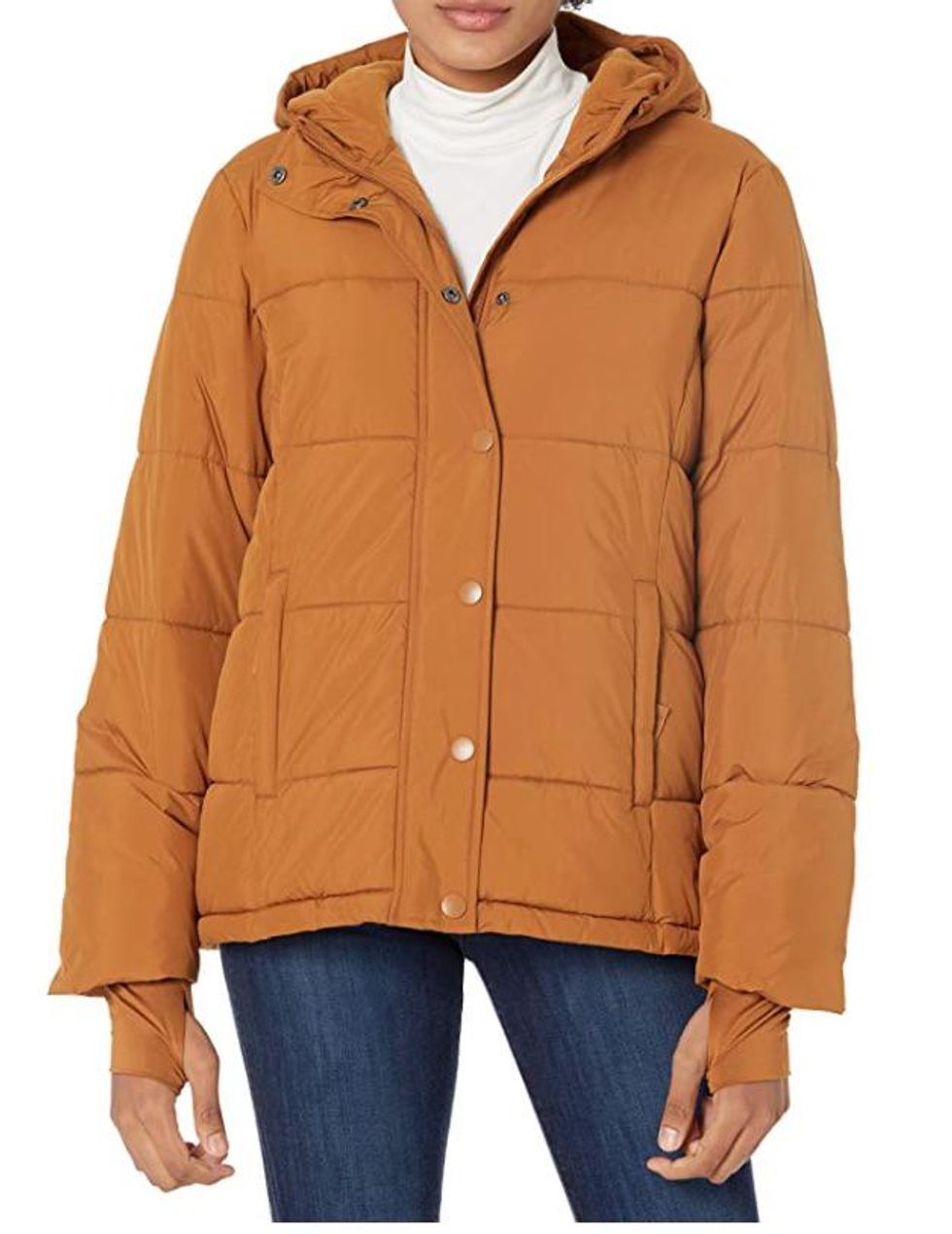 A great choice from Amazon Basics, this Heavy-Weight Hooded Puffer Coat provides reliable warmth with practical details at a fantastic price! It’s water-resistant on the outside, fleece-lined on the inside, and includes a hood as well as stretch-cuffs with thumb-holes (don’t you just love those?). It’s received over 2,000 customer ratings so far, with a very solid 4.6 out of five average.