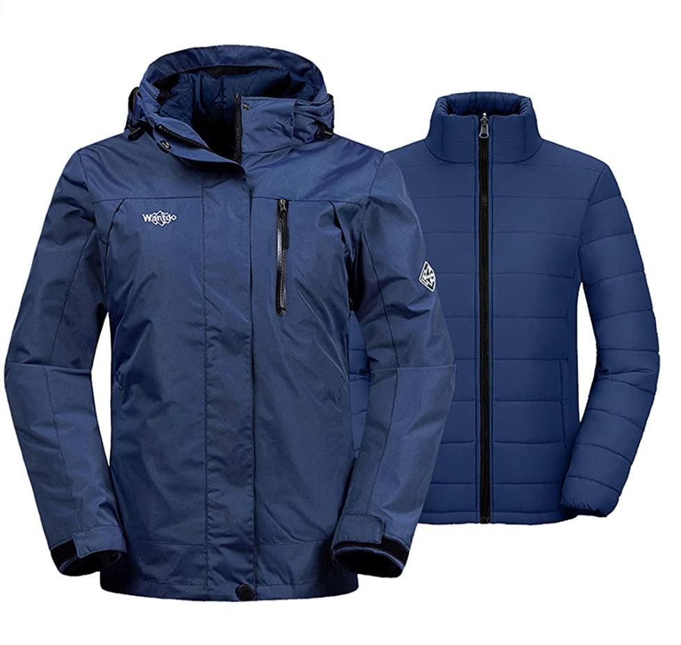 With over 3,000 ratings on Amazon, this 3-in-1 ski jacket is a solid choice for active outdoor warmth. Basically, you get two jackets so that you can wear the insulating puffer jacket for warmth, or the waterproof shell for light protection, or layer both at the same time for a ski-worthy adventure! There are lots of thoughtful features, including adjustable cuffs, extra pockets, and a detachable hood.