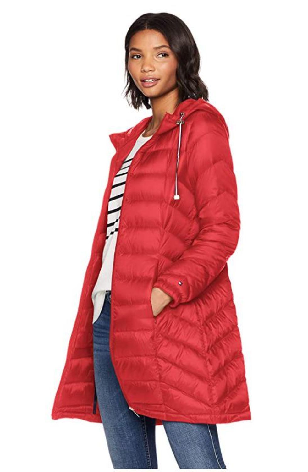 This Tommy Hilfiger Packable Down Coat Fits In a Matching Drawstring Pouch