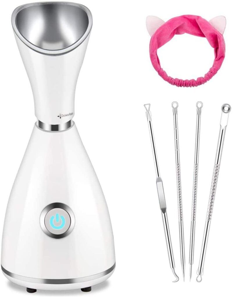 Within 20 seconds, you can be off at the spa feeling refreshed and energized with the push of a button. This Face Steamer uses a sonic vaporizer to produce nano steam with negatively charged ionic particles, which offers up to a ten times increase in penetrating power than conventional steamers. It does wonders for dry skin and noses suffering from wearing a mask all day long.