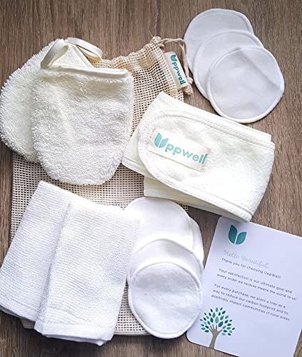 Make your at-home spa day environmentally-friendly with these reusable cotton pads. These face pads are made with organic cotton and are reusable as a sustainable alternative to face wipes. This beauty pack comes with 14 different pieces that include cotton rounds, face towels, exfoliating mitts, and a headband.