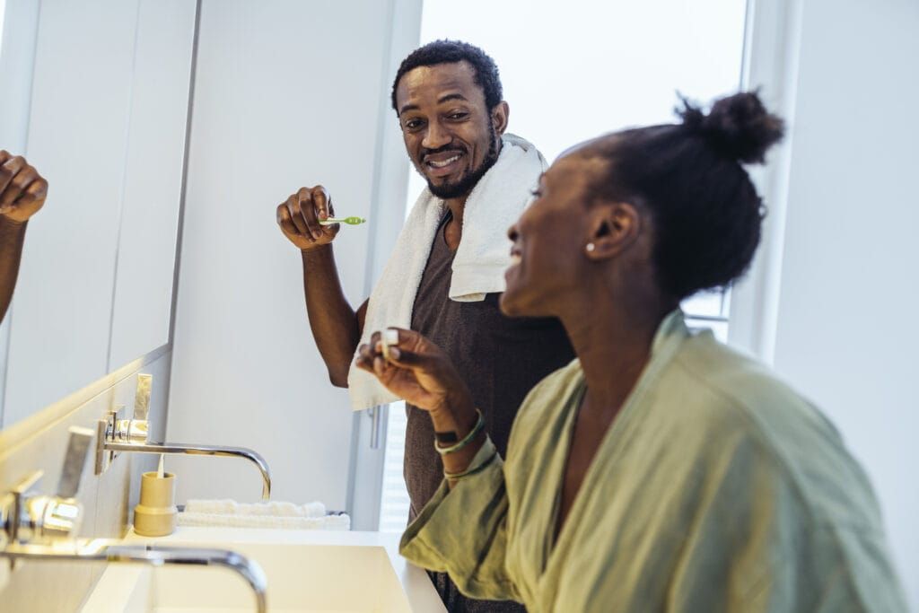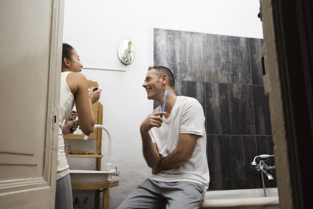 You wake up in the morning, groggy and disheveled, stumbling into the bathroom only to find your significant other hogging the sink.
