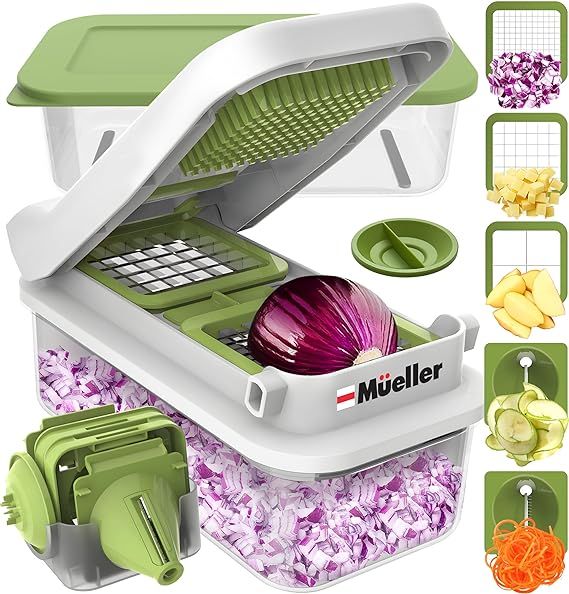 Cut your cooking prep down substantially with this Mueller food chopper. It comes with a variety of attachments, each one ready to help you fulfill your cooking desires. A traditional chopper to dice in different sizes and a few spiral blades for some fancy dinners. Future cooking you will definitely want a high-five!