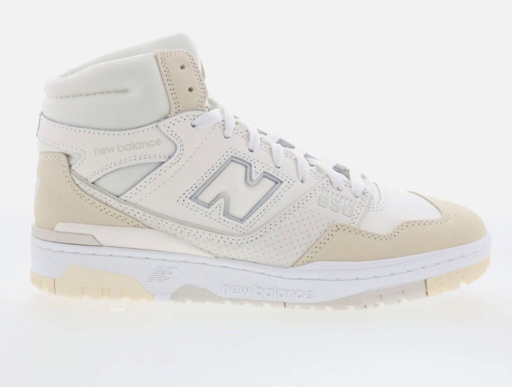 These New Balance 650R High-Tops are $82 off retail, offering that retro basketball silhouette in a clean, neutral beige.
