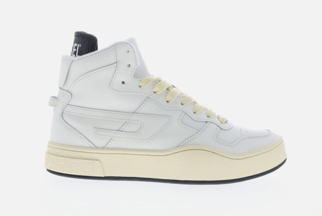Save $197 on these Diesel S-Ukiyo Mid Sneakers—a premium 79% discount on high-end, white leather lifestyle kicks.