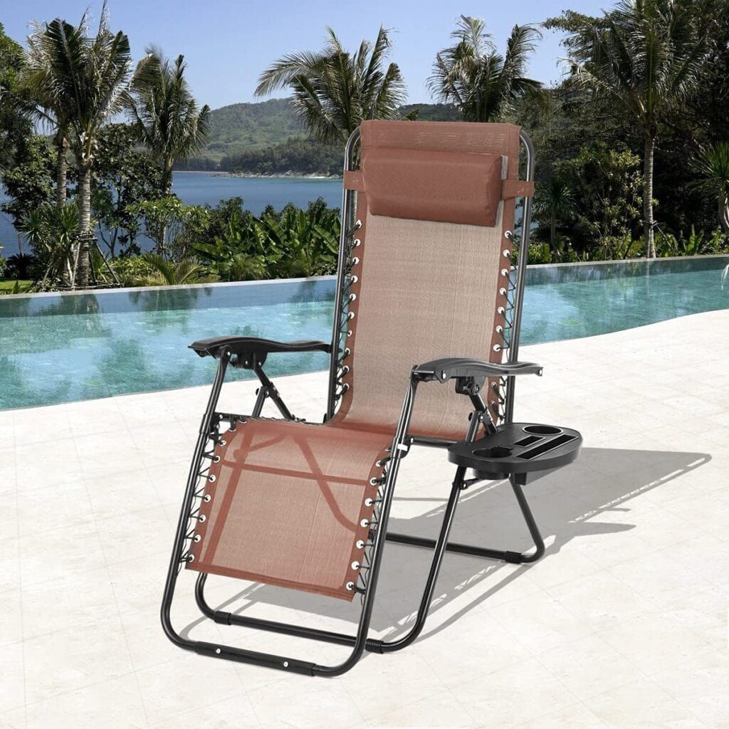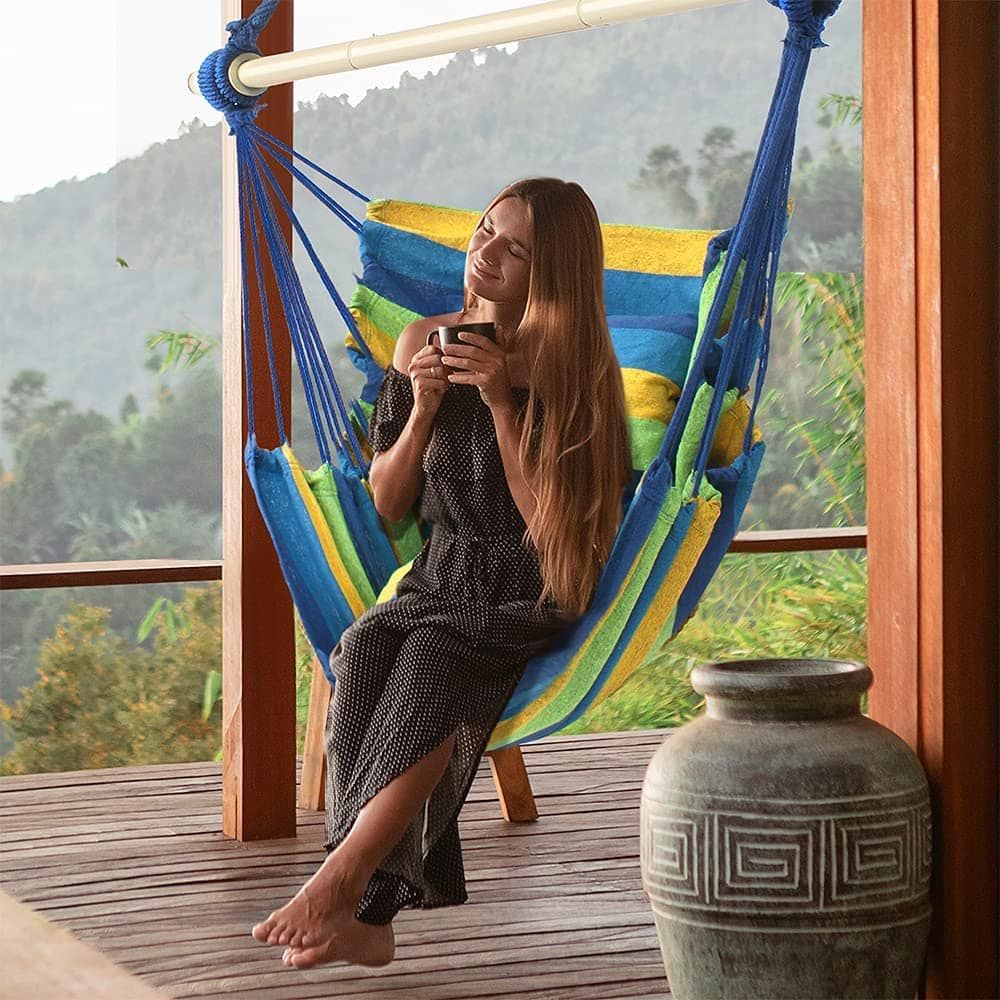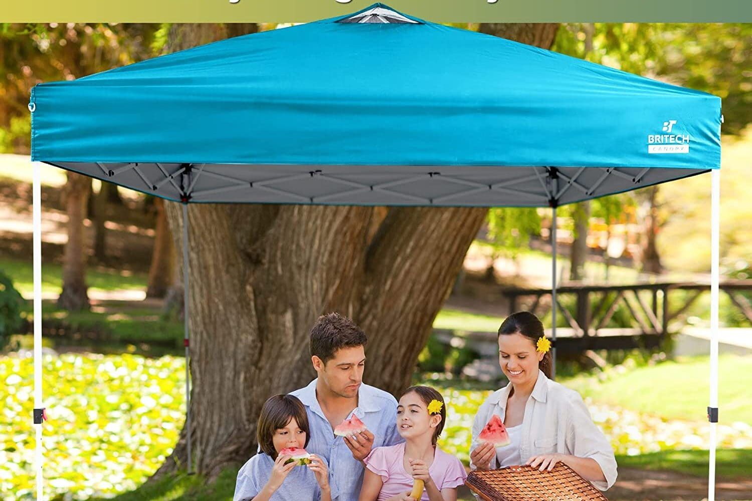 Whether you’re a lounger and want something like a swinging chair or you’re a picnic-er and want something to give you a little more shade, like this canopy, I’ve got you covered with this one. Cozy blankets? Check. String lights? Check. Fire pit? Check! I’ve got it all.