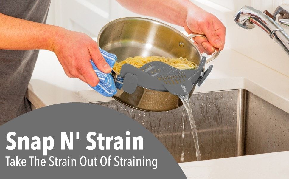 - Originality at its best: This is the original Snap N’ Strain, designed and manufactured by Kitchen Gizmo! It’s not just a strainer, it’s a standout kitchen accessory that will outshine any basic colander.