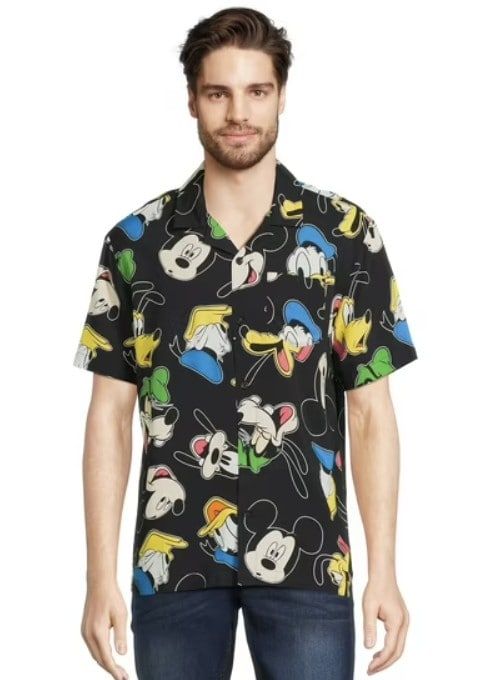 This shirt has seen some things—like rope drop chaos, castle selfies, and at least one meltdown in Fantasyland. Luckily, it’s made from soft rayon, has a relaxed fit, and is breathable enough to survive park heat and questionable turkey legs. With Mickey and the gang all over it, this is peak Disney dad-core and we respect it.