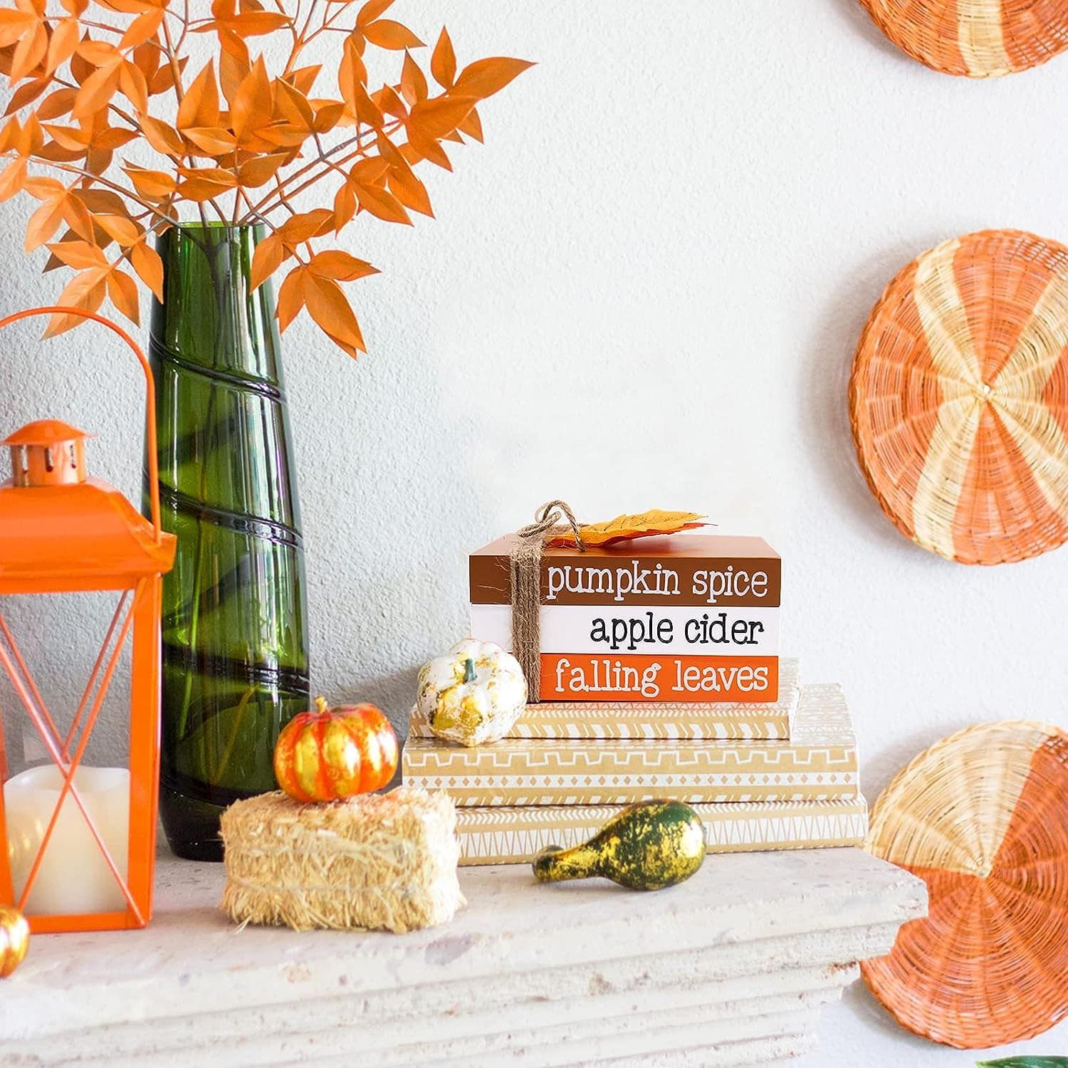 This tiered tray decor set is a curated collection of faux wooden books that serve as the literary backdrop for your autumn celebrations. Adorned with maple and pumpkin motifs, this set is a visual representation of the season. It’s like your home decor decided to write a love letter to fall. Whether gracing your kitchen shelf or holiday table, these book stacks are the silent narrators of your seasonal story.
