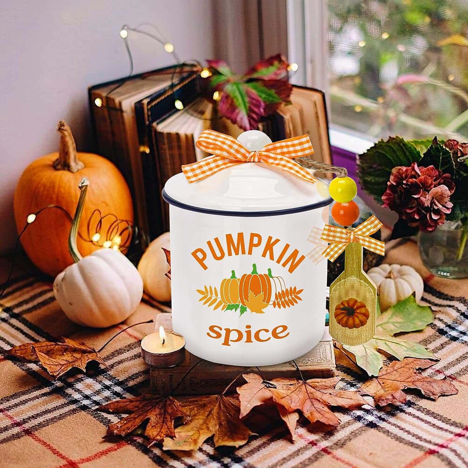 The pumpkin-themed ceramic canister is more than just a container; it’s a seasonal statement piece. Complete with a wooden beads spoon, this canister is the epitome of farmhouse chic meets autumn elegance. Use it to hold cookies, candies or even your secret stash of pumpkin spice treats. It’s the canister that turns everyday storage into a seasonal spectacle.