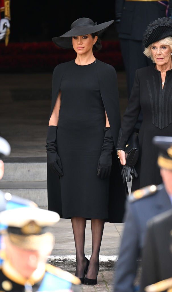 Meghan Markle and Kate Middleton wore poignant outfits during their attendance at the Queen’s funeral.