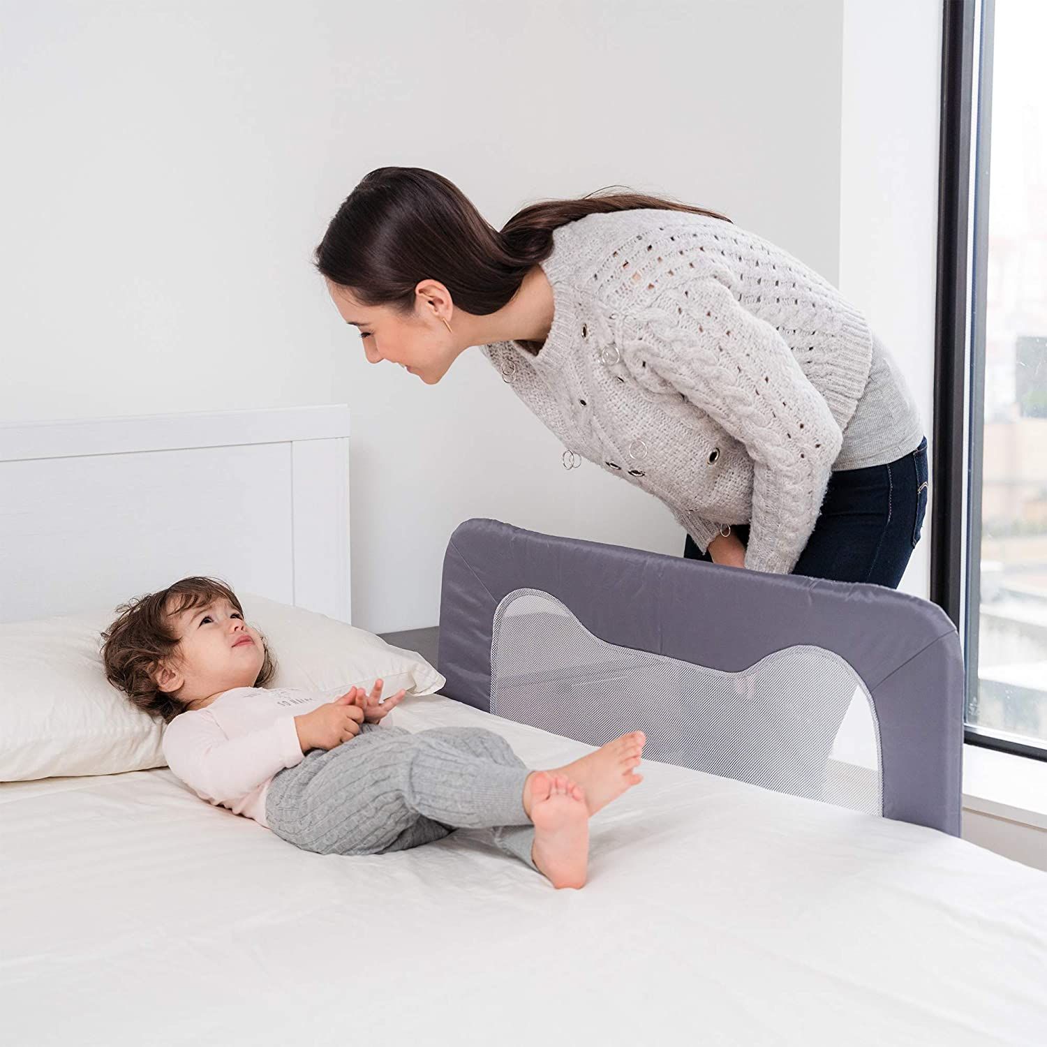 All bed rails are not created equal and this version is the only toddler rail that won gold in the Mom’s Choice Awards. Compatible with most bed types and sizes, this is made of mesh fabric for breathability and metal rods for protection. Fold it down when you’re getting them in or out of bed or need to change the bed sheets.
