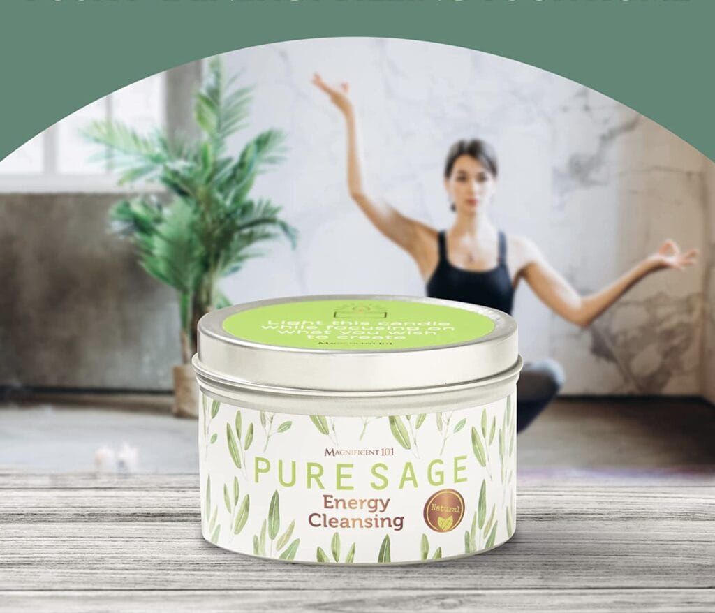 It’s always important to cleanse your space before you set yourself up in a new home. This candle is pure sage so you can bring a little calming, cleansing into your space before you get settled in. And the back even has a space for you to write your intention for your new home.