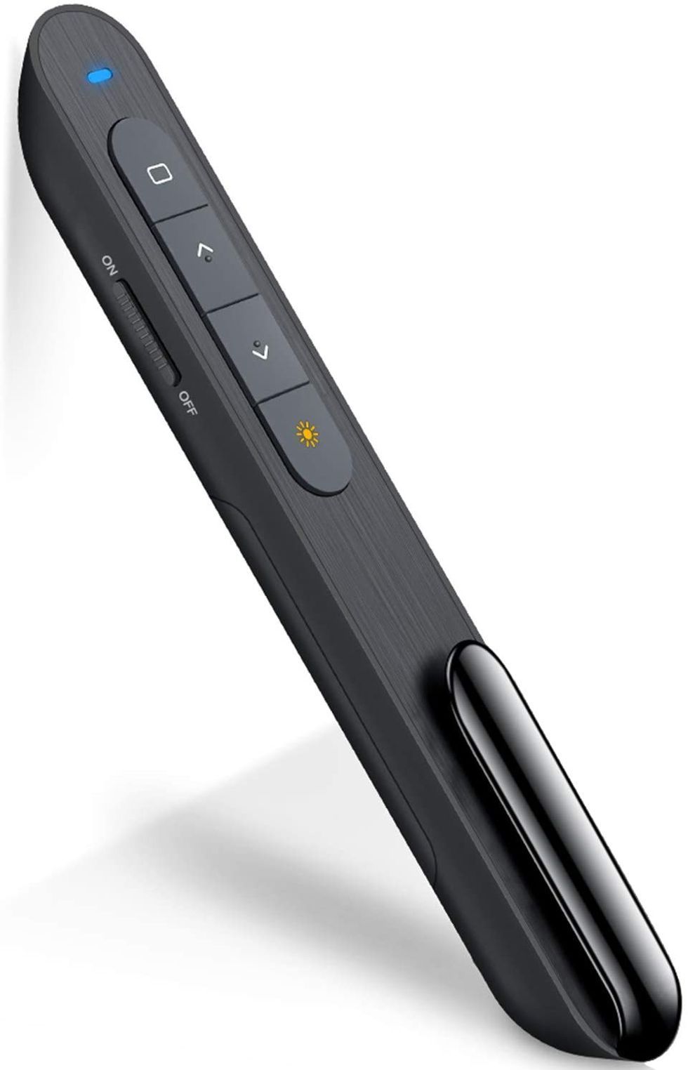 Hosting meetings can present a number of challenges. This wireless presenter helps reduce those problems by incorporating several functions into one handheld device. The DinoFire wireless presenter can advance slides, control your computer, and act as a handy laser pointer as well.