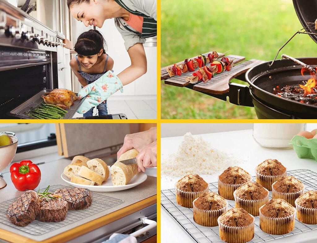 This stainless-steel cooling rack is built to withstand your best baked goods. But why stop there, nothing ruins a meal like burning the roof of your mouth, so let your meals rest on this easy-to-clean grid before you serve. Â