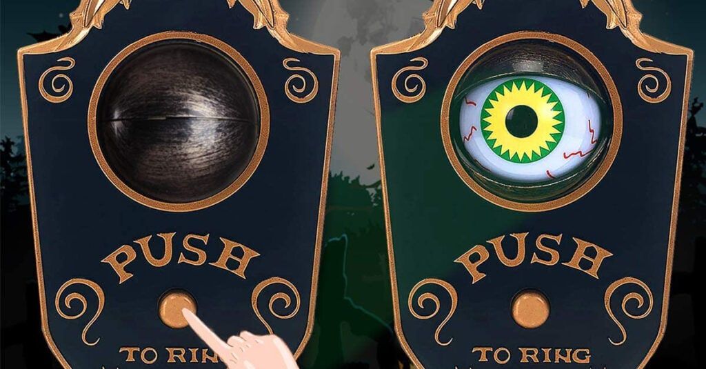 This is my favorite decoration on the list. It’s simple and small, but surprisingly engaging and immersive. The way the eyeball moves is so freaky, it looks real! It even has a moving eyelid. Check out the video reviews if you don’t believe me! Your more delicate friends will say “eww” while the rest of us enjoy the spooky greeting. I’ll take two!