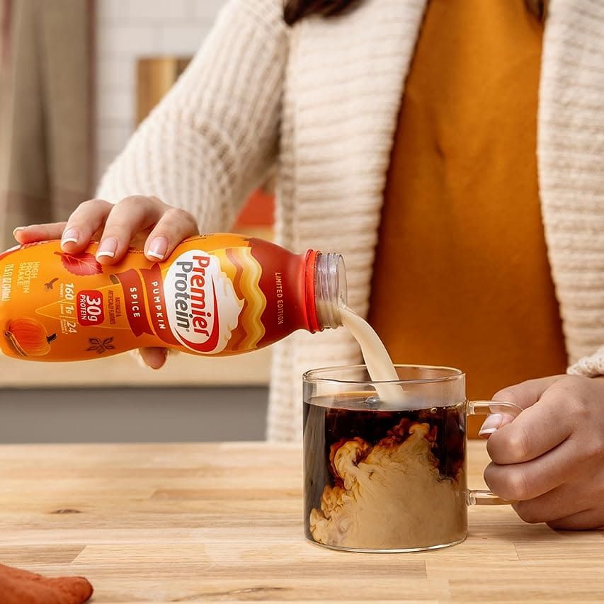 I can’t get enough of two things: pumpkin spice and protein. I’m trying to stay fit and happy, and increasing my protein is one of the best ways to do that. And one of my favorite ways to increase that protein is with the Premier Protein Pumpkin Spice Latte Shake.