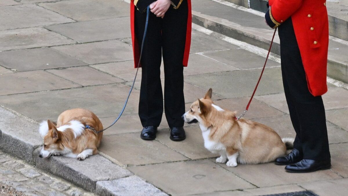 The late Queen’s beloved Corgis made a poignant appearance during her funeral procession as they waited for her coffin in Windsor.