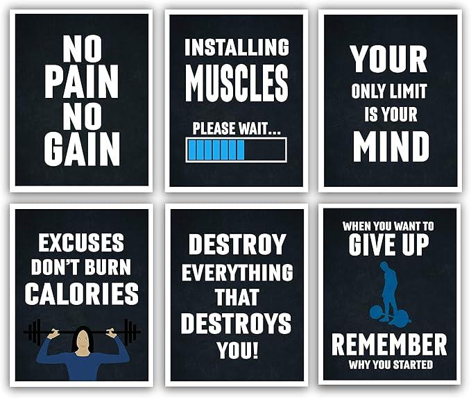Motivational Gym Posters for Home Workout Room – Set of 6