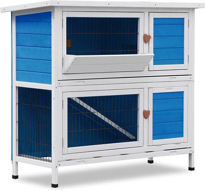 PawHut 2 Story Outdoor Rabbit Hutch with Openable Top
