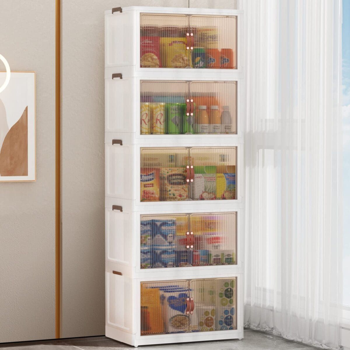 One of the standout features of these storage bins is the dual access design. You can choose to open them from the top or through the front door. The front door is equipped with a strong magnetic closure, ensuring that accidental openings and messy spills are a thing of the past.