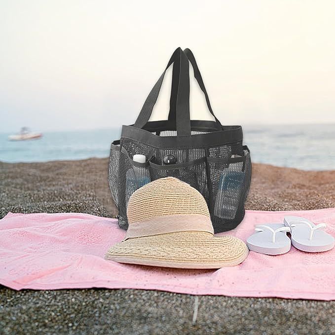 Tote your beach essentials with this adorable beach bag. Made with your convenience in mind, it’s got a mesh design so it keep your items in and the sand out. It has a large design and nine different pockets, so you are beach ready to go!