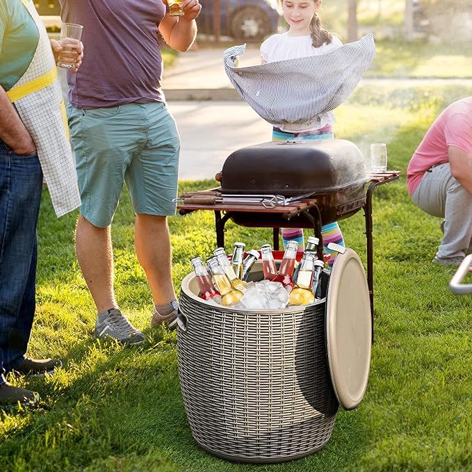 This cooler is the whole kit and kaboodle. You’ll definitely need this cooler around for your next pool party. It has a large capacity, ready to store tons of drinks. It has a lid (that is easy to remove) that can also double down as a beautiful patio table.