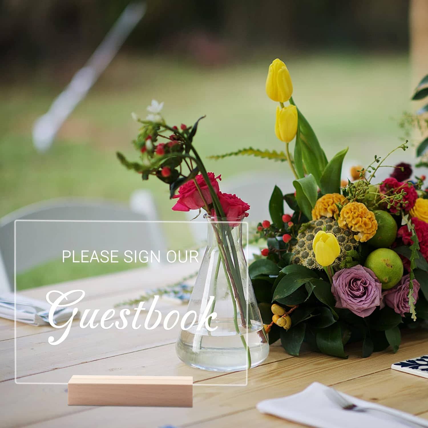 Unveil the future of chic wedding signage with TLunlove Clear Acrylic Sheet with Wood Stand. Perfect for those who want their guests to squint with admiration. DIY tip: Use a white or metallic marker for a “floating text” illusion, ensuring your message of love is both clear and mystifying.