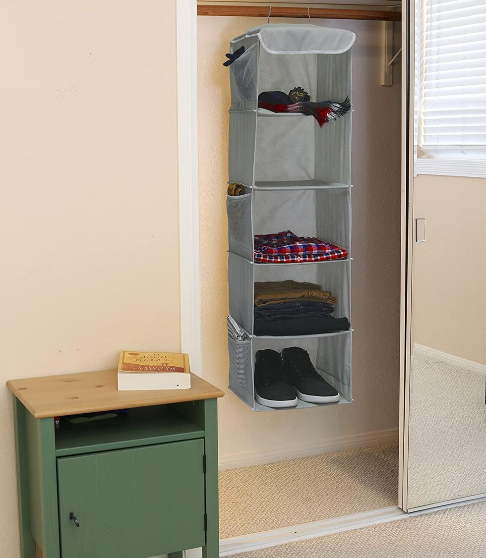 If there’s one product I can’t recommend enough, it’s this closest organizer. If you’re guilty of having a messy closet like me, this hanging closet organizer is a godsend – trust me. Now you’ll actually be able to see all the clothes buried in the depths of your closet. That shirt you bought five years ago will make its grand reappearance. You can thank me later.