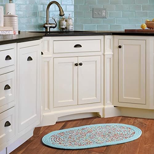 We love coordinating pieces in this house, so of course, I had to include the rug that matches the placemats that I mentioned earlier. While there are slight differences (such as the color), it’s still made of that braided material, so the two would match perfectly.