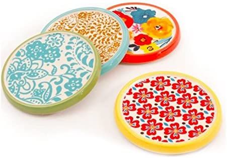 Reviews say, “Clean easily. Absorbency is good but better after the first wash. Whether you are using Pioneer Woman coordinating items or not, the variety of colors and styles mix and match with any kitchen. They all add a pretty punch of color, whether floral or decorative squares, whether you have modern, classic, or country decor. Although there are different styles and patterns, you can hang any two next to each. Versatile use and look new after long use and many washes. Well worth the price.”