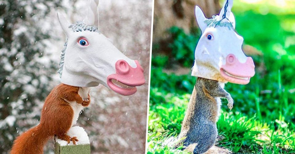 You Can Get a Unicorn Head Squirrel Feeder for Your Yard and It’s Hilarious
