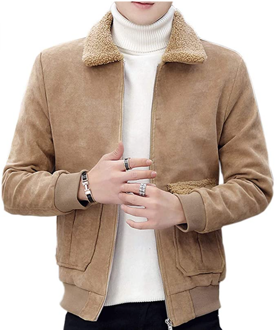 9. Chouyatou Men’s Suede Bomber Jacket