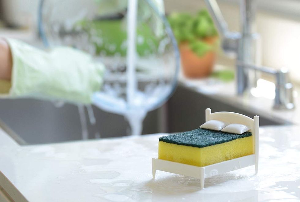 There are tons of little sponge holders out there, but this one is sure to make washing dishes a little more fun. Nestle your sponge underneath the pillow clips of this mini bed holder so it can rest between washes.