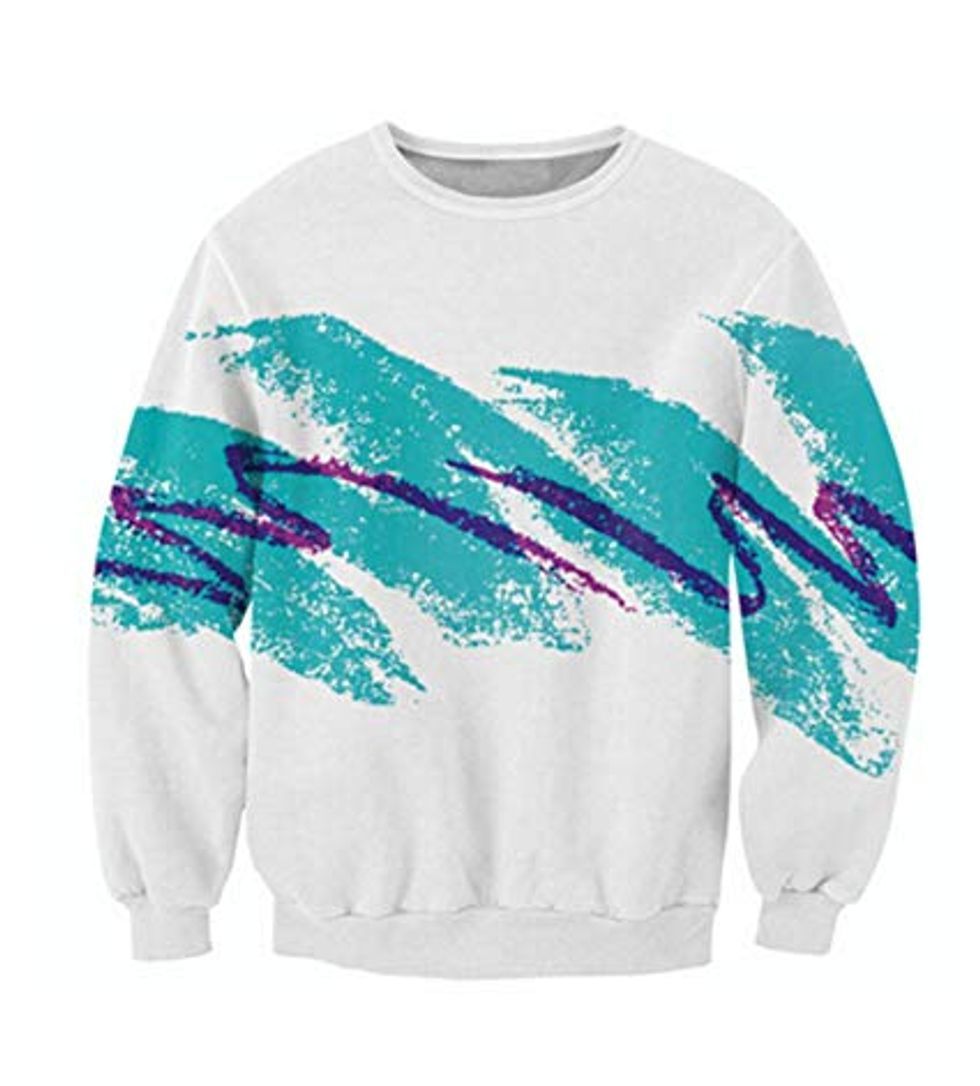 Evoking “Saved by the Bell” and every soda you ever had a few decades ago, this sweatshirt provides a cozy dose of nostalgia. You can also get this design in a variety of top styles, but this type of sweatshirt is very particular to the time.