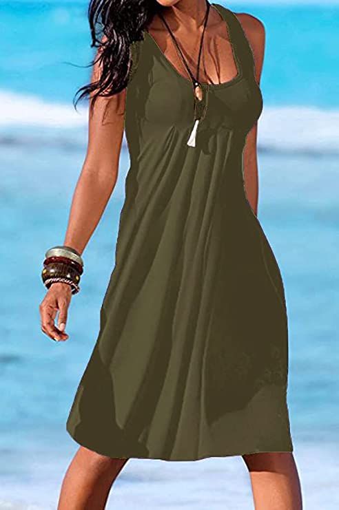 If skirts are comfortable and tank tops are comfortable, it stands to reason that a tank dress is going to be a home run … and it is. This loose-fitting rayon and spandex dress is soft, lightweight, and comfortable with an easy pull-on closure. I love dresses like this because you can add jewelry or a denim jacket and have a complete look.