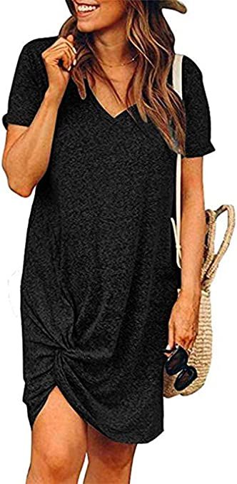 T-shirt dress for the win! Nothing is easier to throw on, on challenging mornings than a T-shirt dress and this one with adorable twist-knot detailing is extra sweet. Soft, stretchy and breathable, the simple knot alone makes them more than your basic Walmart T-shirt dress. Add in a variety of colors and sizes and this is destined to become one of your new faves.