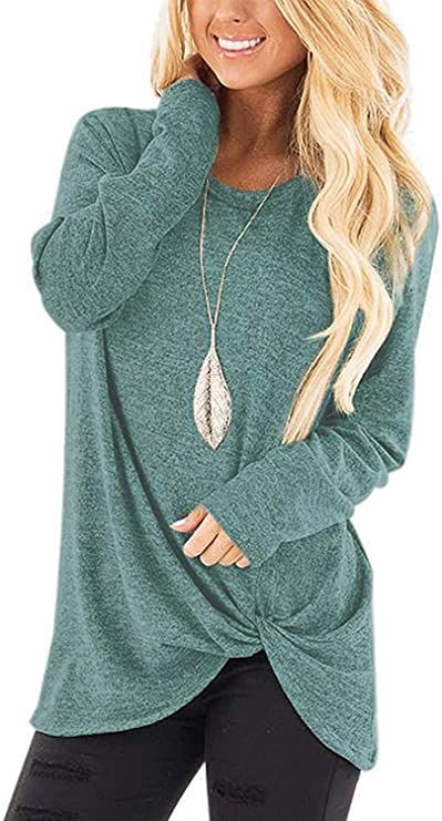 Solid tops are great wardrobe additions because not only can they be paired with leggings or jeans at a moment’s notice but they can be mixed and matched with other pieces in your closet. This casual top with twist knot detailing is going to become your new favorite shirt thanks to its casual styling and comfortable fit. I love the variety of colors here (and colorblock options, too!).