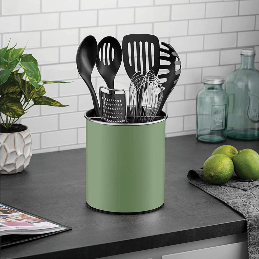 If you’ve already gotten a start on collecting cooking utensils, maybe you just need someplace to stash them. This extra-large stainless steel utensil caddy will help organize your space and offers additional conveniences like a rotating design and divided interior for better separation. You can grab this in a couple of great colors, too, including red, turquoise, and the mint green pictured.