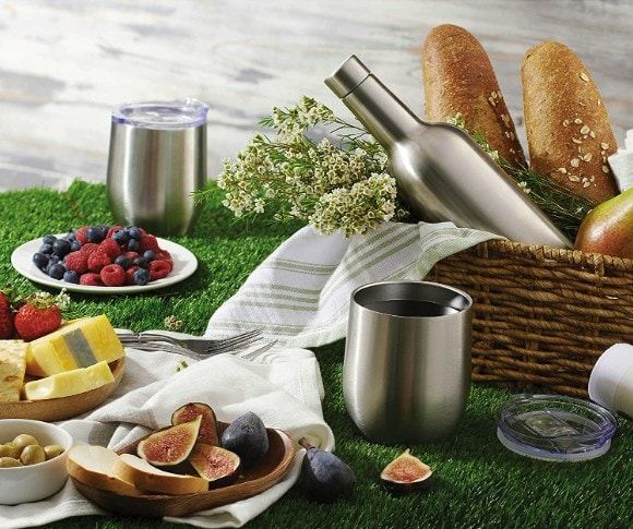 I know this says “wine chiller gift set” but to quote Johnny Depp: “Isn’t happy hour anytime?” Sure, you can gift it or you could use it yourself complete with 14-ounce wine glasses and a 750 ml bottle. Both are made from vacuum-insulated material that maintains the temperature you want whether hot or cold. The cups even have clear sliding lids with a silicone seal to stay spill-proof and keep flying critters out of your drink.