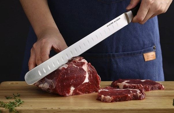 You’re about to discover that you don’t want to cut meat with just any knife. You need a carving knife that was built for slicing large cuts of beef. The Granton carving knife works well for everything from meat to vegetables, making it a must-have for your kitchen. This purchase includes the 12-inch stainless steel knife, an edge guard sheath, and a dual knife sharpener.