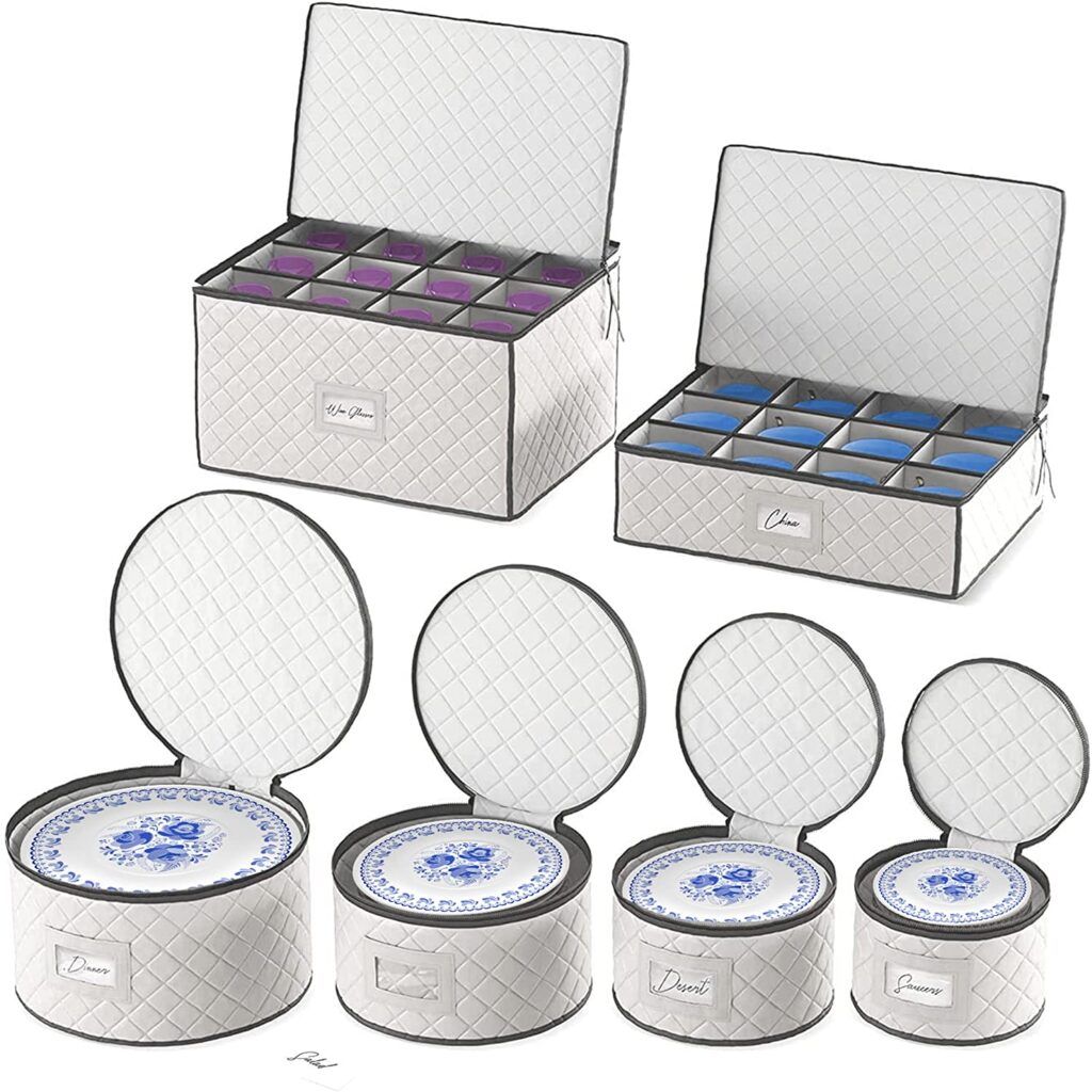 Whether you have hand-me-down china from grandma or seasonal china because you’re fancy like that, you likely aren’t going to have room for all of it. Protect it with this quilted dinnerware and wine glass storage. These thick padded cases have smooth-glide zippers so you can put plates in storage and take them out with ease. This set includes enough storage for 12 place settings, including mugs.