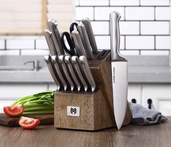 You’re probably going to have multiple knife sets in your culinary pursuits but this 15-piece premium knife set is a great starting point with 10,000 Amazon reviews. The set includes an 8-inch chef’s knife, 8-inch bread knife, 8-inch carving knife, 7-inch santoku knife, 5-inch utility knife, paring knife and six non-serrated steak knives. A knife sharpener, all-purpose shears and a wooden storage block are included for efficient storage.