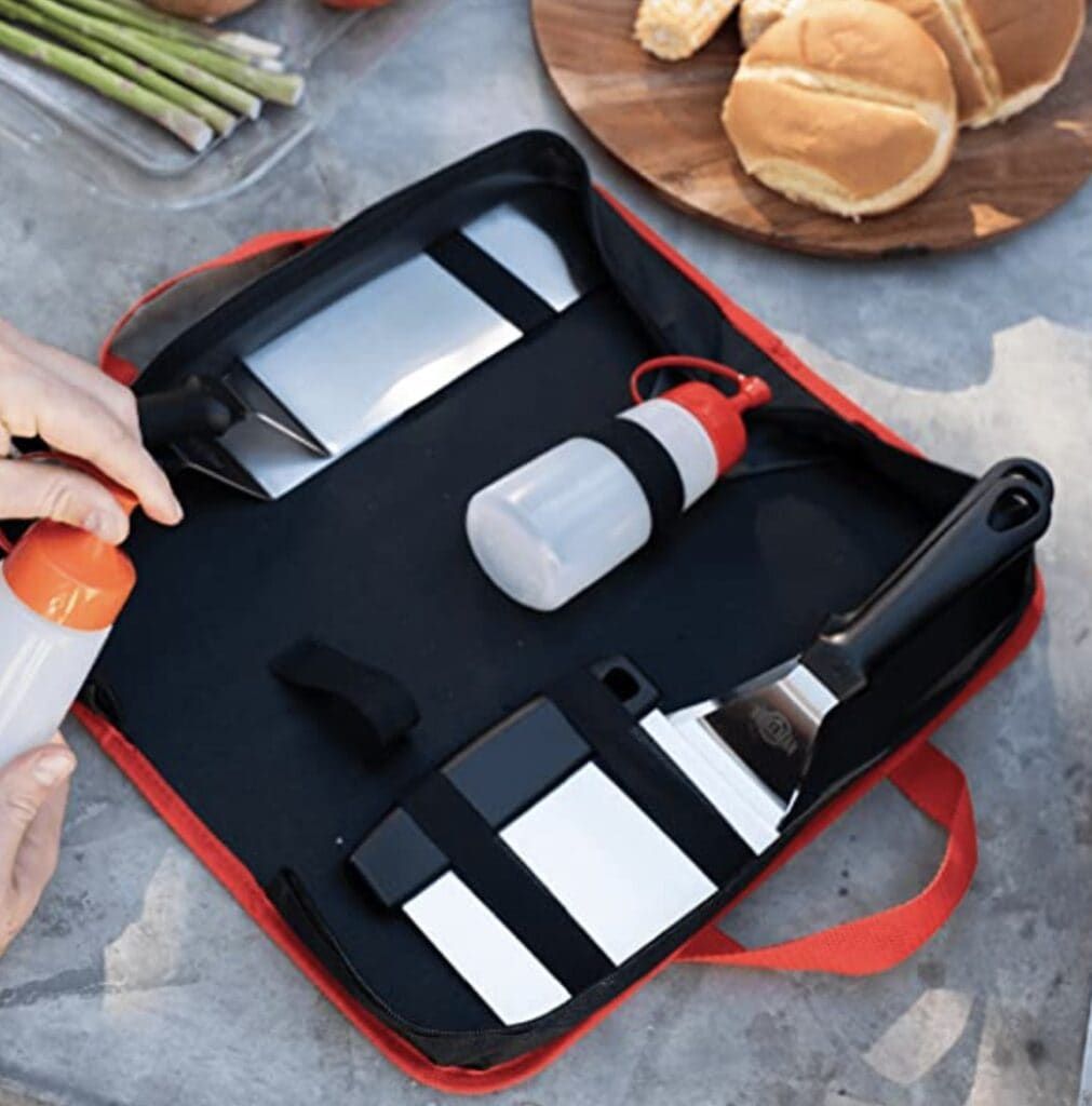 It’s no secret that grilling and pool days go hand-in-hand. A burger when you’re lounging by the pool is the epitome of a perfect summer day. To ensure that you get the most delicious grilled food possible, use this grill set. It comes with griddle spatulas, regular spatulas, a chopper, a scraper, and two squeeze bottles.