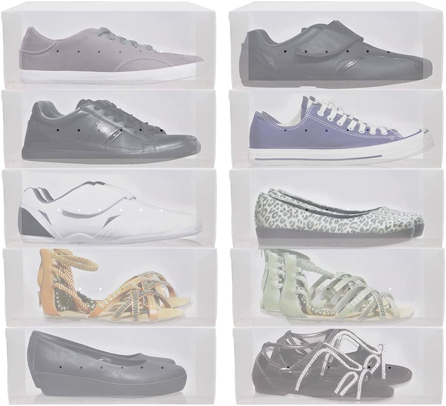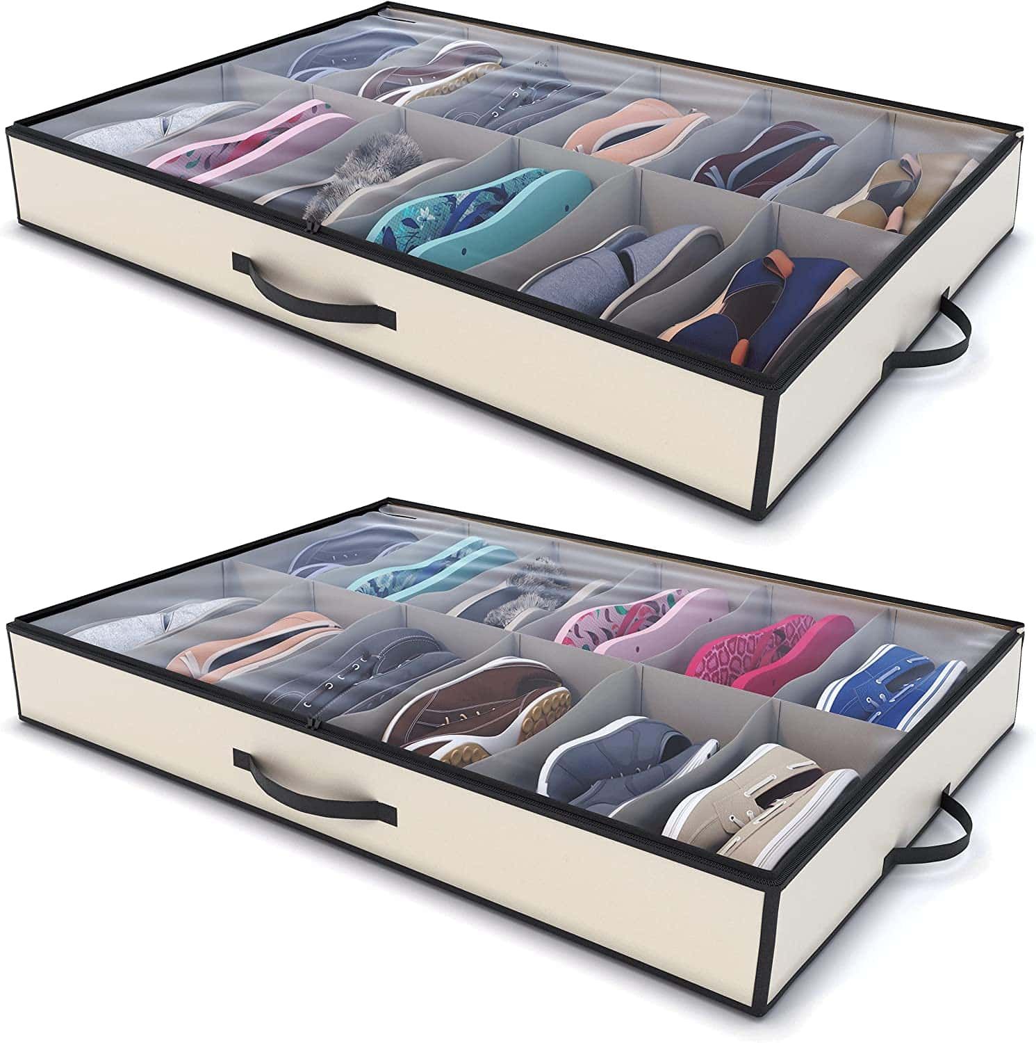 We discussed several shoe storage options already but don’t be deceived by the photo, these boxes could be used for a variety of things from clothes to books to toys and more. These boxes are clear and easy to assemble while saving a ton of space because they’re stackable. Ventilation holes in the box help keep air flowing so there won’t be any odd odors.