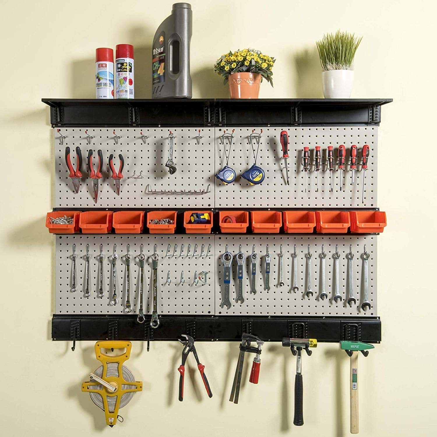 If you have a load of yard tools and indoor gadgets like mops, brooms, and dusters, you need this wall mount organizer. It has 11 storage spots total and can be used indoors or out thanks to its weatherproof design. Each commercial-grade hanger has a 35-pound capacity and features spring-loaded, rubber-gripped slots without any slippage concerns. This has a near-perfect, five-star rating with nearly 9,000 reviews.